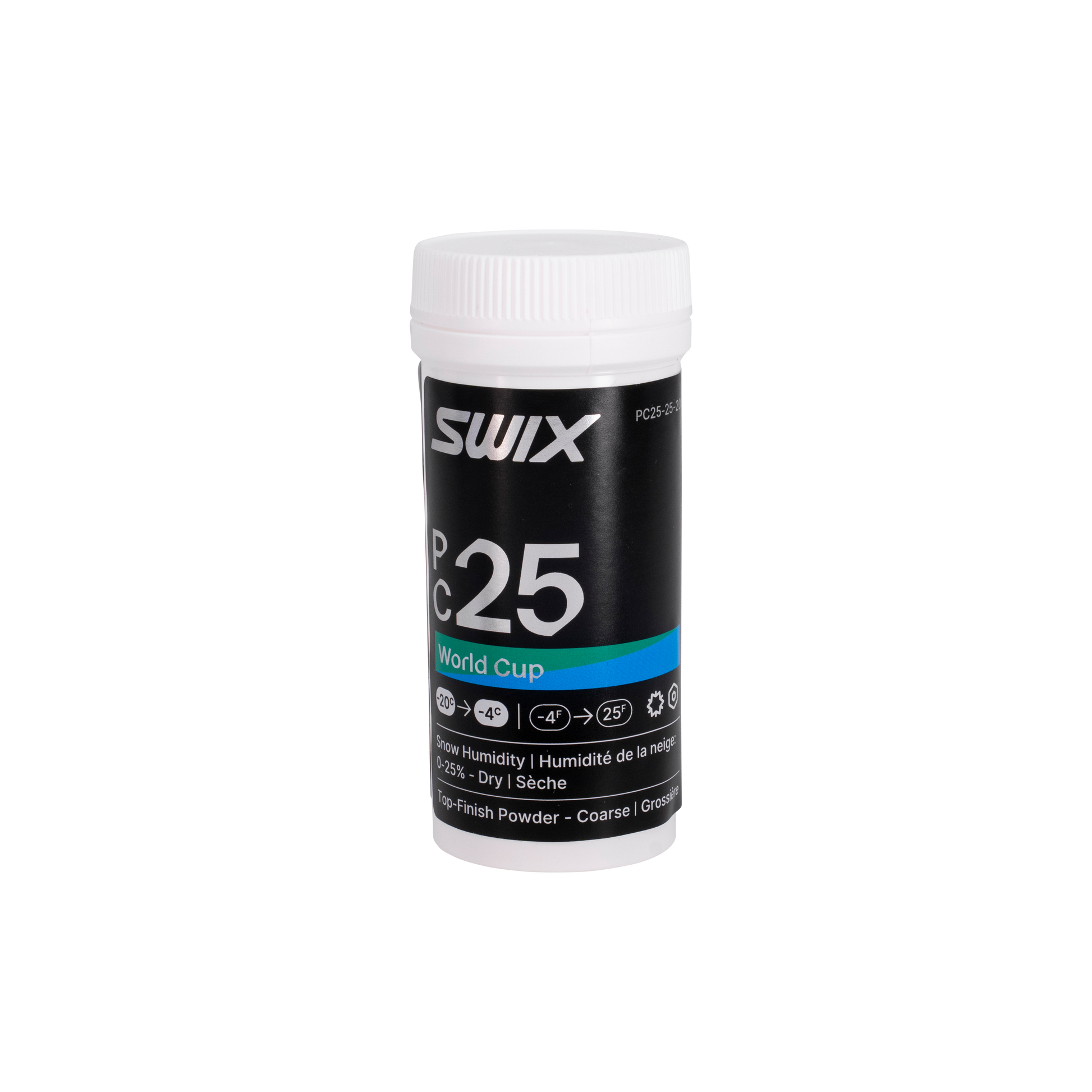 La poudre de finition idéale pour les conditions de neige sèche et grossière. Grâce à la technologie Nano Contact, cette poudre crée une couche nano ultra-lisse qui réduit considérablement la friction sur la neige transformée. Idéale pour une humidité de neige comprise entre 0 et 25 %, la poudre PC25 garantit une vitesse optimale sur les pistes froides et durcies. Il suffit de la saupoudrer, de la faire fondre à l'aide d'un fer à repasser à 160 °C, puis de dévaler les pistes. Approuvée par les techniciens de la Coupe du monde, elle est désormais disponible pour vos skis.