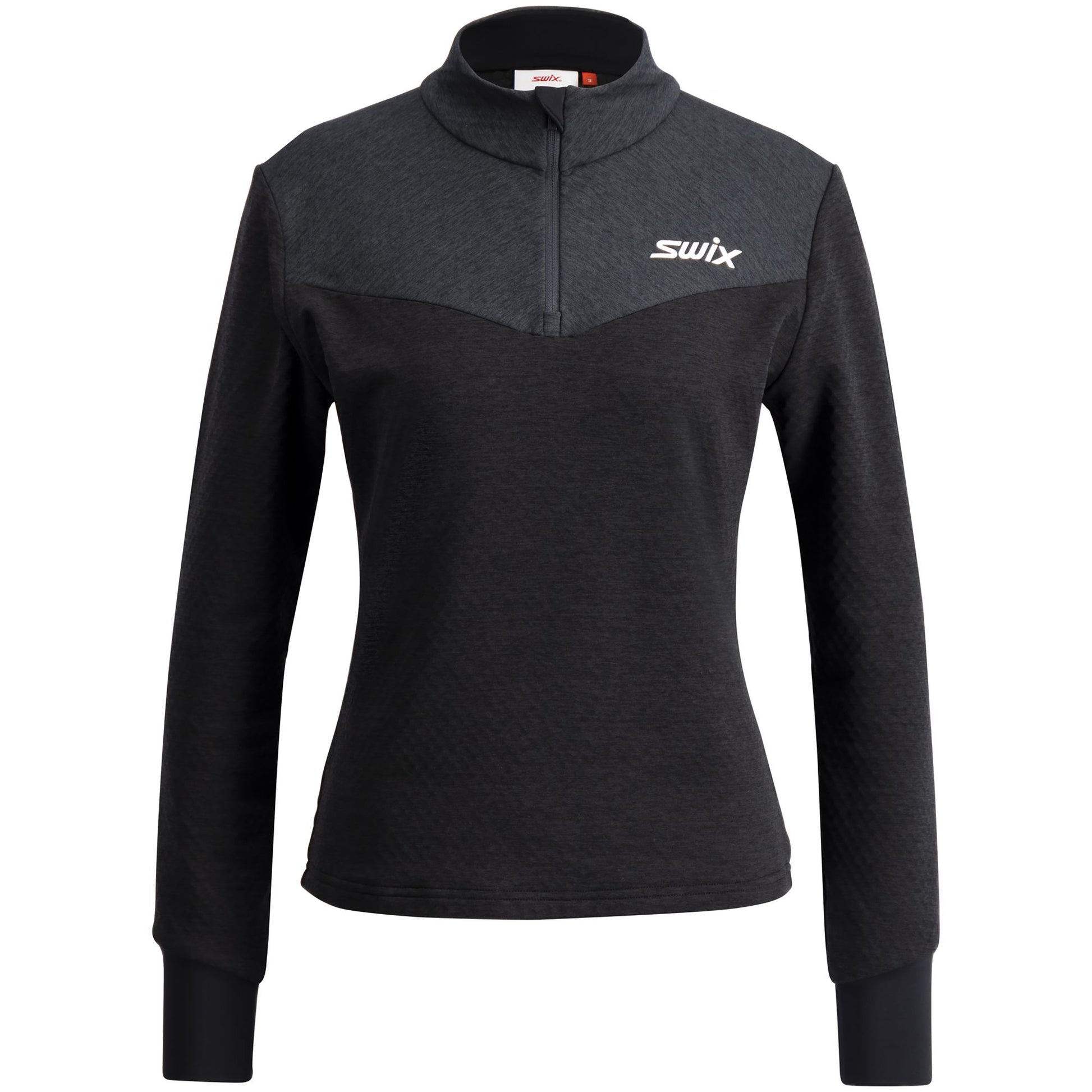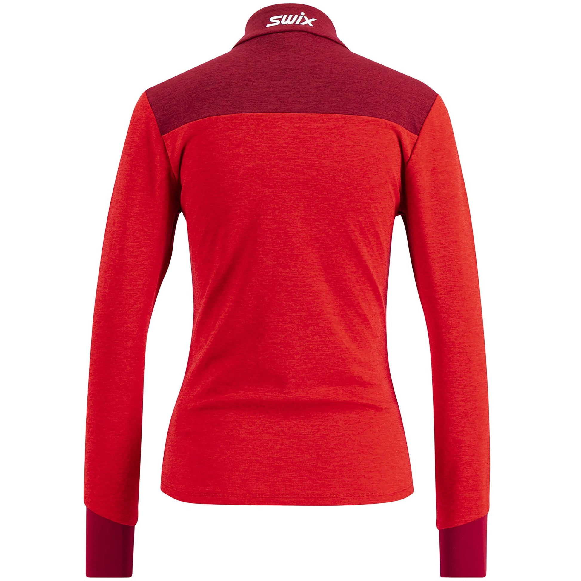 Wear the Dynamic Midlayer Half Zip for cross-country skiing in high intensity on colder days. This midlaye can be used on top of your baselayer or directly next to your skin. Made with recycled polyester, the main fabric has a good level of stretch with quick-drying function and features a brushed backing with moisture-wicking performance and great comfort. A half-zip at the neck allows to easily adjust ventilation if you need to release warmth during your training. The Dynamic midlayer features stretch cuffs at the bottom of the hem sleeves for additional comfort.